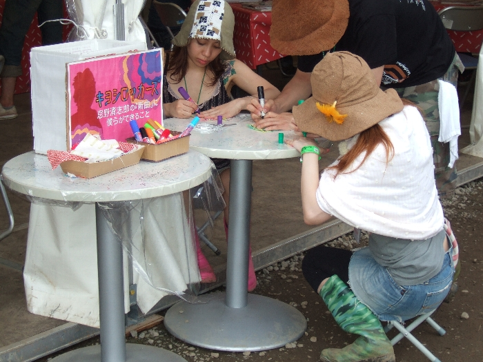 布切れにメッセージを買いて何かを作り、忌野清志郎に渡そうという企画。これもフジロッカーズ・オルグの企画です。