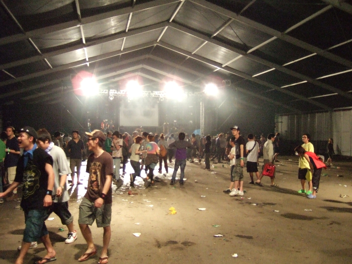 レッドマーキーは人がほとんどいない写真を撮るのが難しい。1、2、3日目は夜中も公演が続くため、ずっと人がいる状態です。