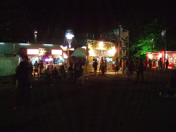初日午前3時すぎのオアシスエリア。この時間帯はオレンジ・コートでオールナイト・フジも行われています。まだ人がたくさんいます。