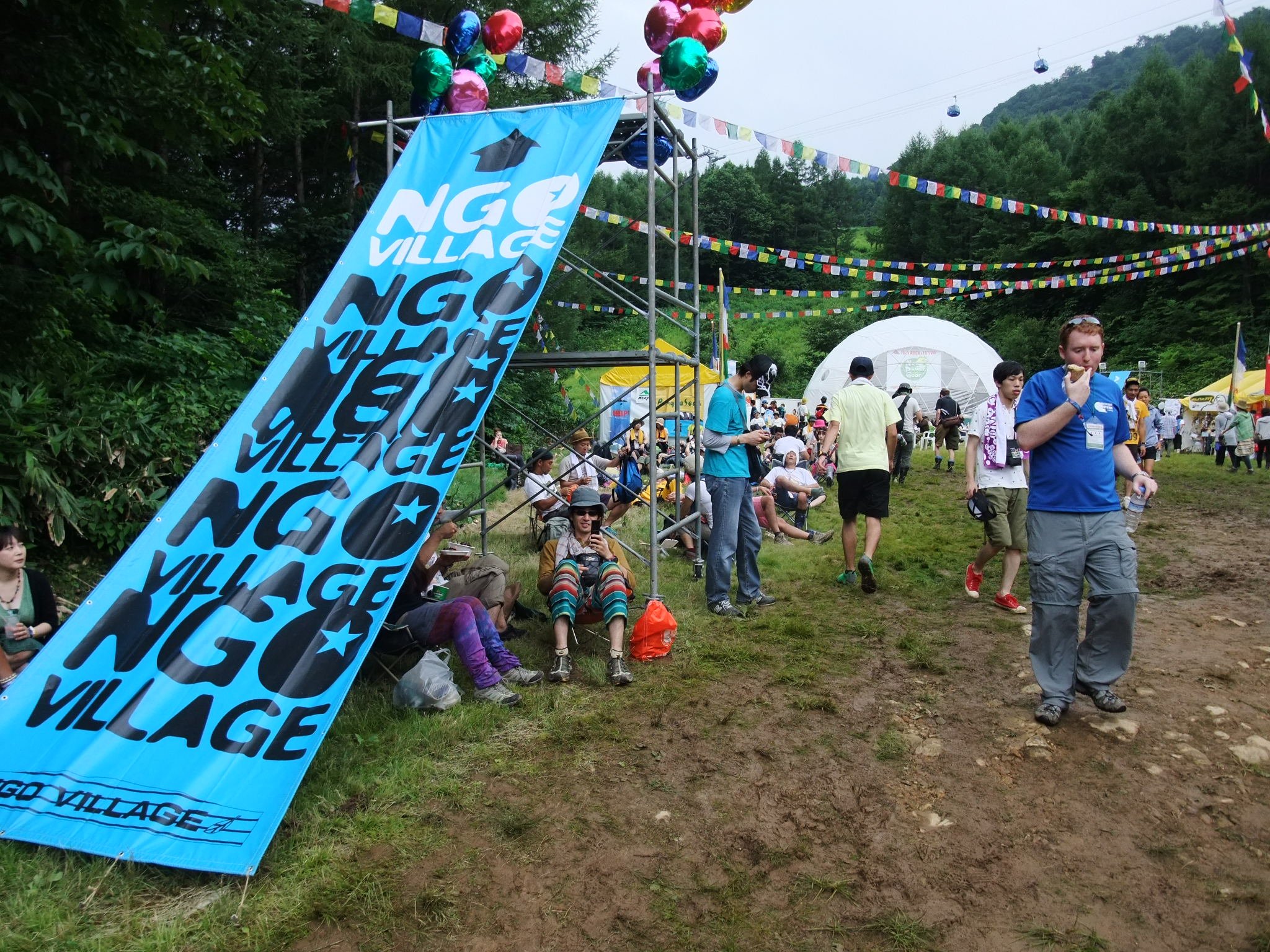 NGOビレッジの垂れ幕。奥はNGOドーム。