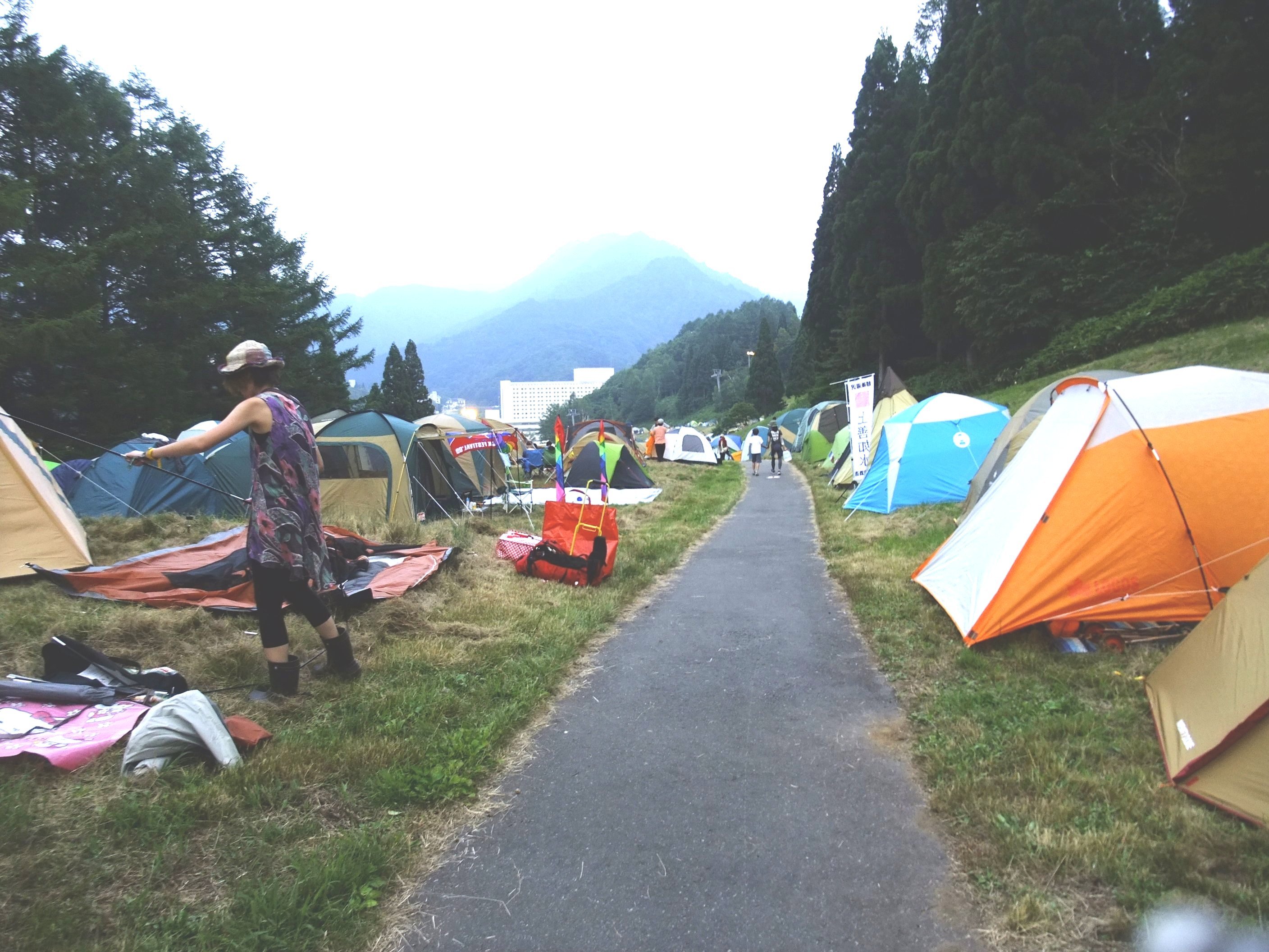 キャンプサイト前とHサイトの標高差は約100メートル。