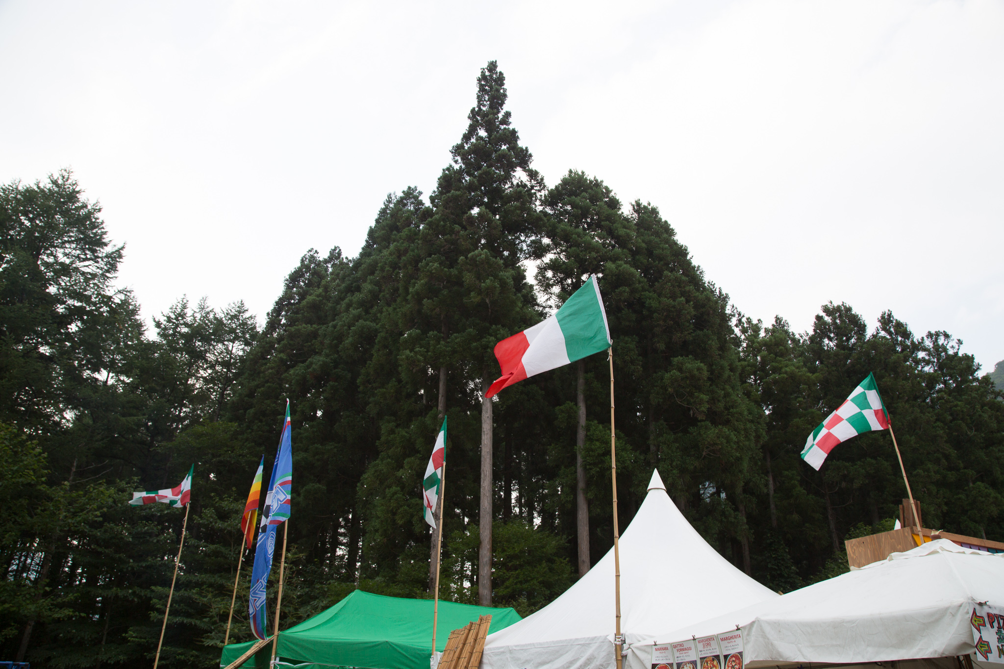 さくらぐみのテントの上はイタリアの国旗がはためく。