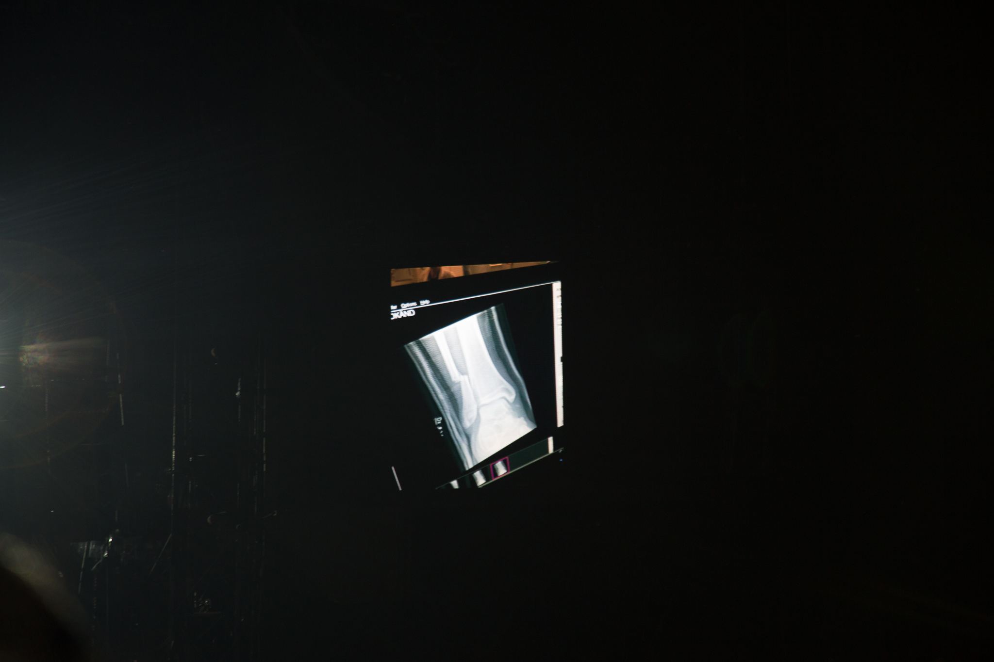 途中で骨折のいきさつを説明。骨折事故を演出として見せ場にしてしまうのはさすが一流のアーティストだ。