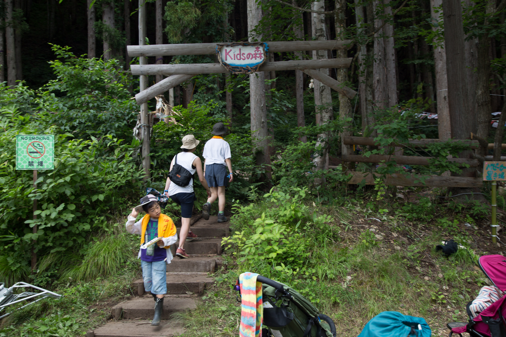 キッズランドの山手側。てるてる坊主が並んでいました。