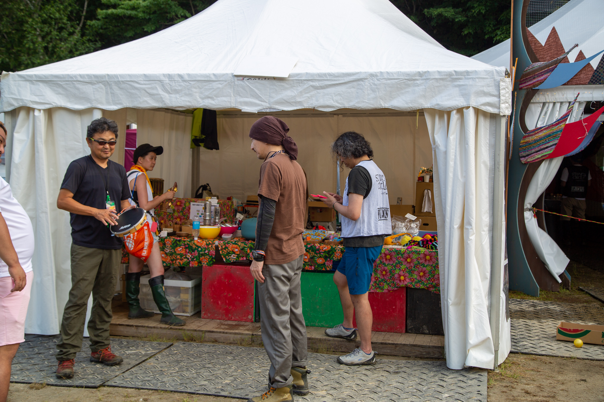 ドラムサークル隣の打楽器のテント。