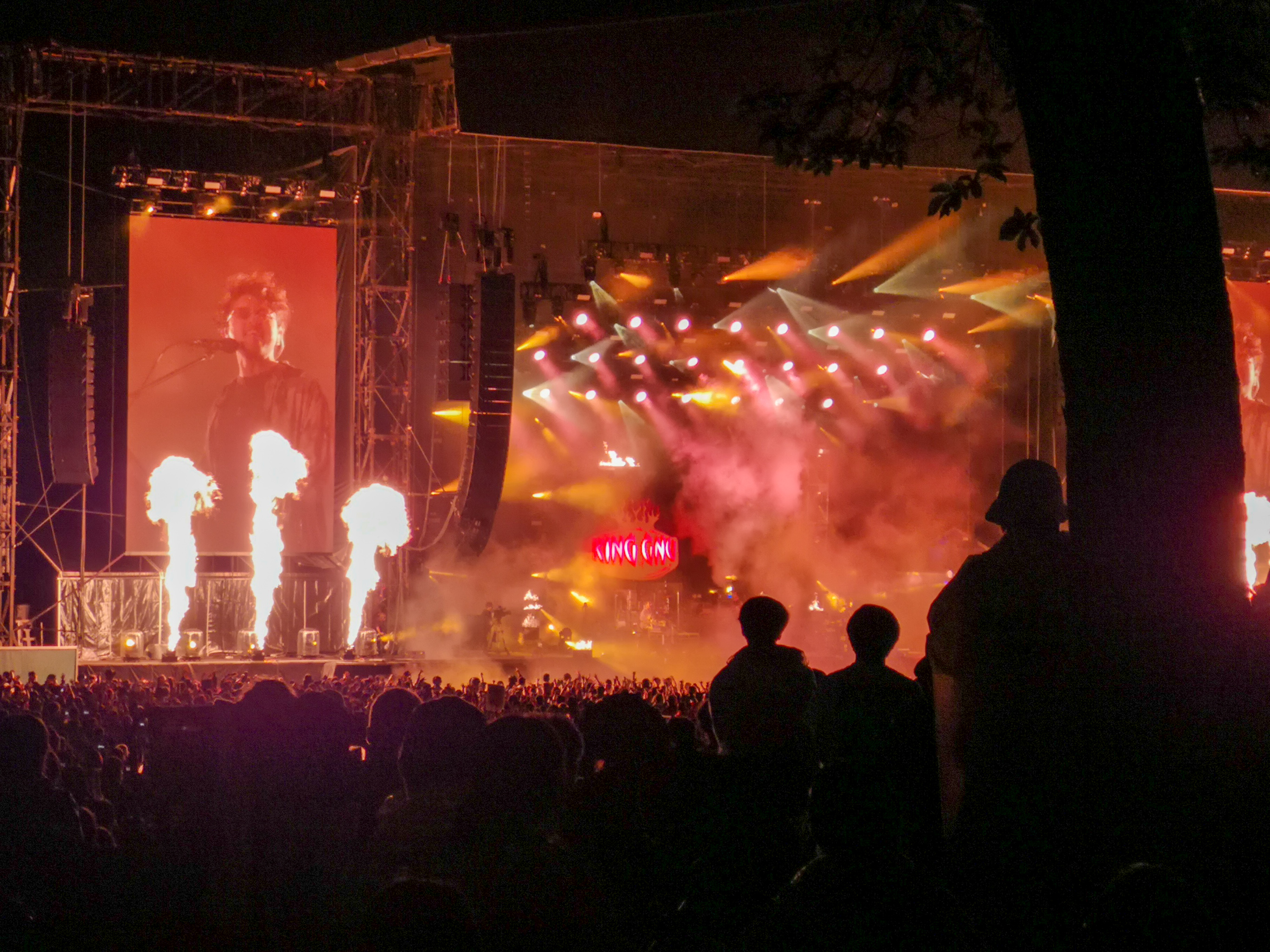 King Gnu。前方は通常のフジロックと変わりませんが、フジロックのグリーンステージ前方は以前から密集していません。