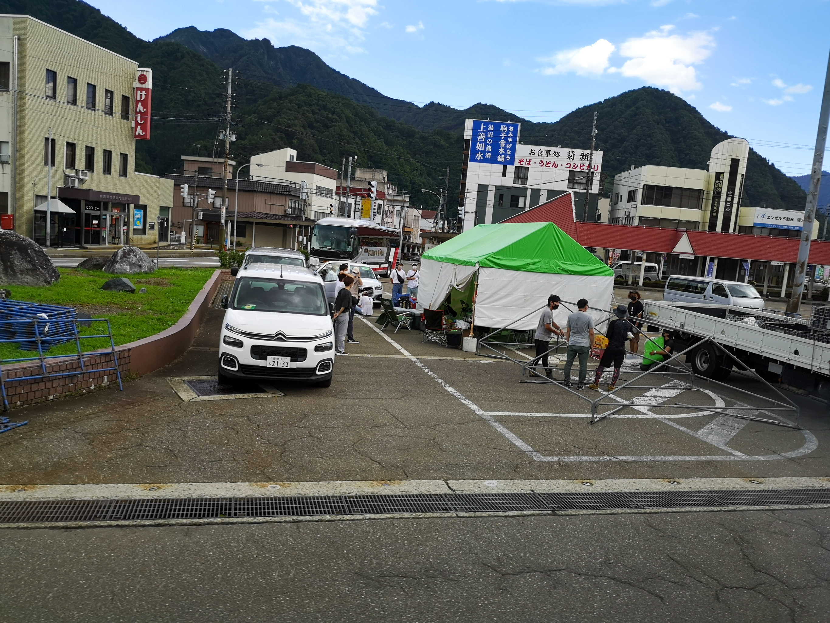 シャトルバス乗り場のテントはまだ建っていませんでした。