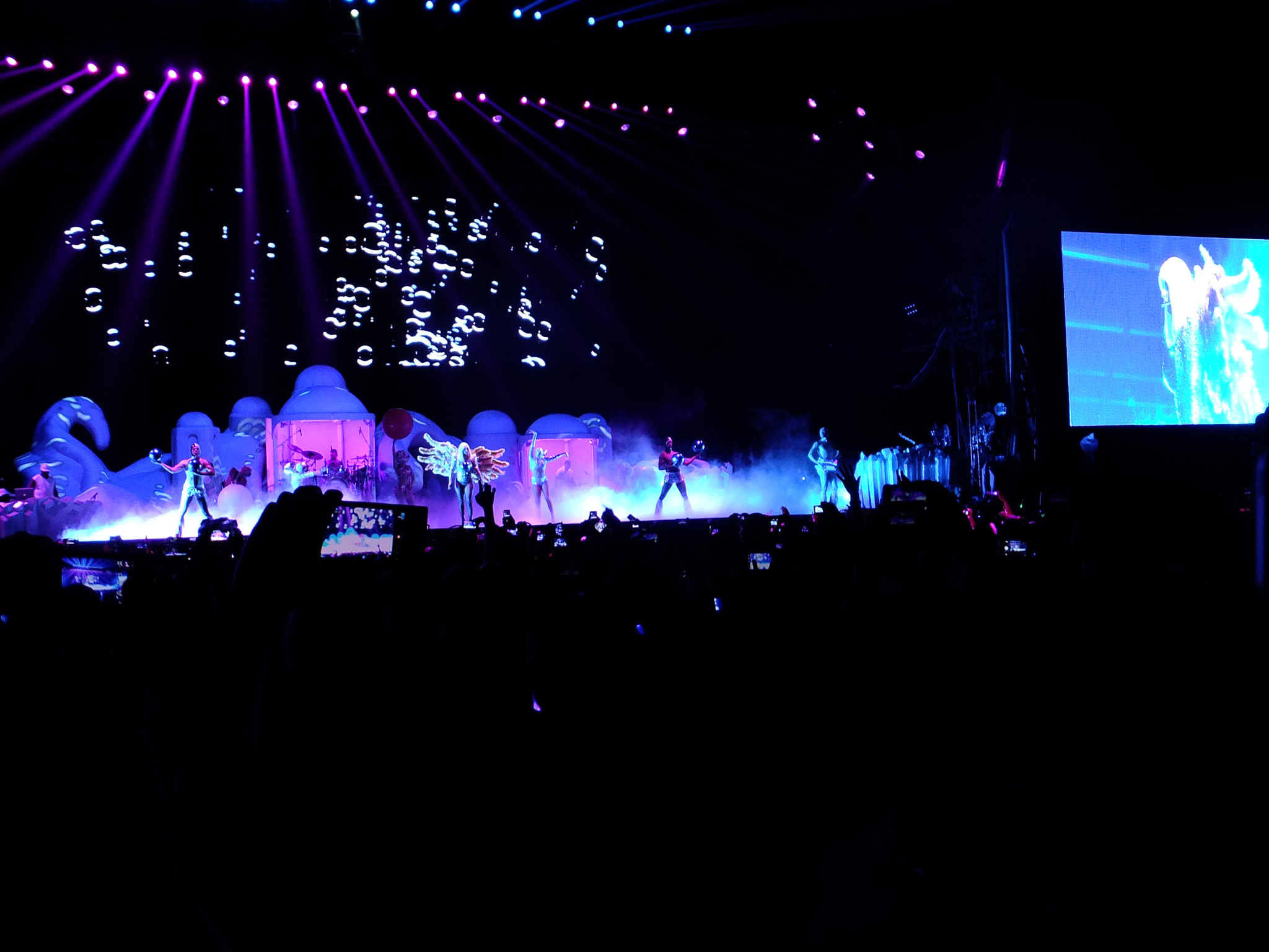 紙吹雪や風船は他のアーティストの公演にもあるので、レディー・ガガだけの特別な演出はなかったと言ってよい。しかし衣装は奇抜だった。