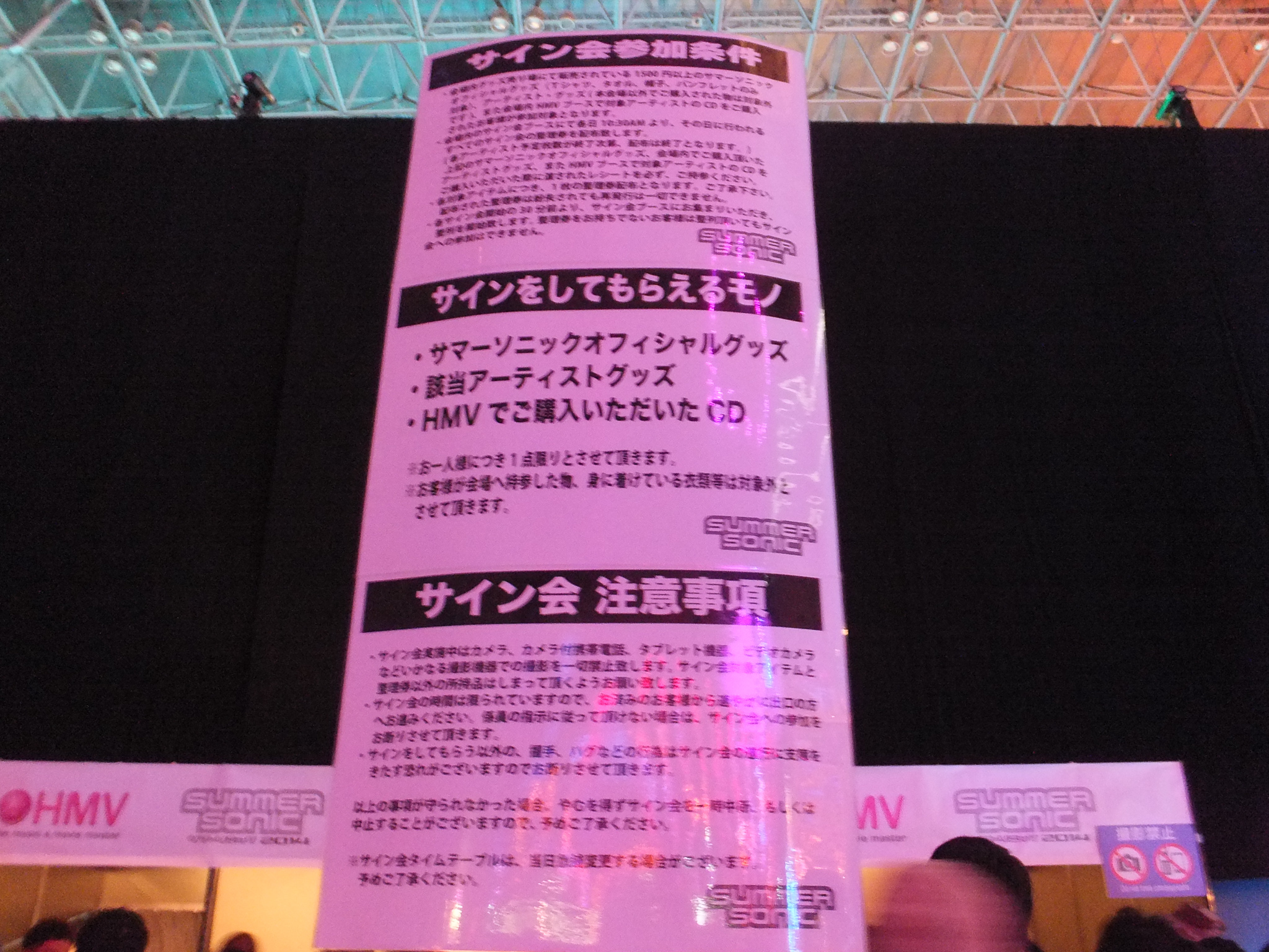 柵で囲われたタイムテーブル、会場地図等。