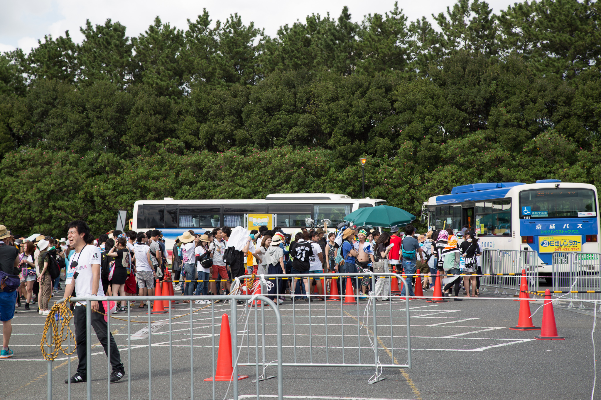 幕張メッセ側のシャトルバス乗車待ちの行列。