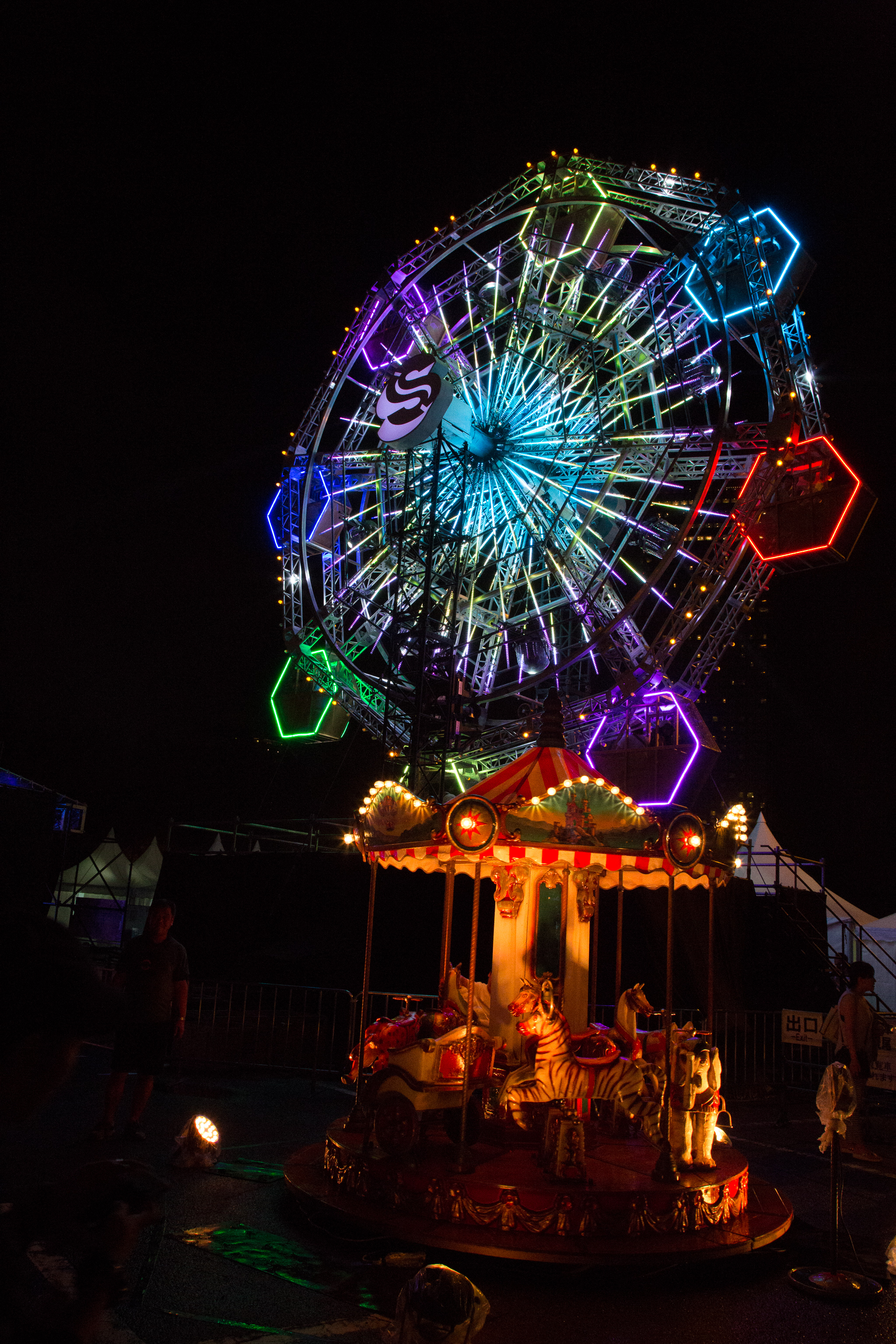 左側の奥にアイランドステージ。照明が気球に見えます。