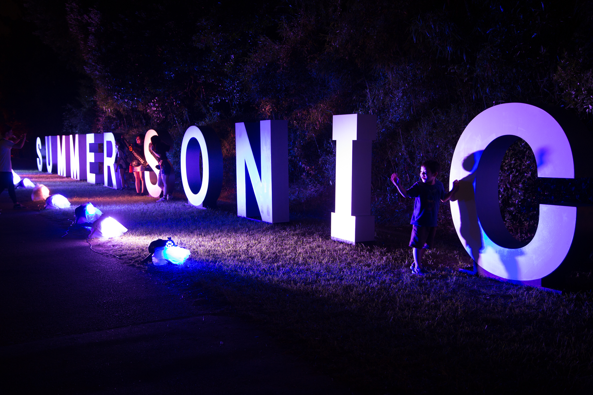 サマーソニックの文字のオブジェ。記念撮影多数。